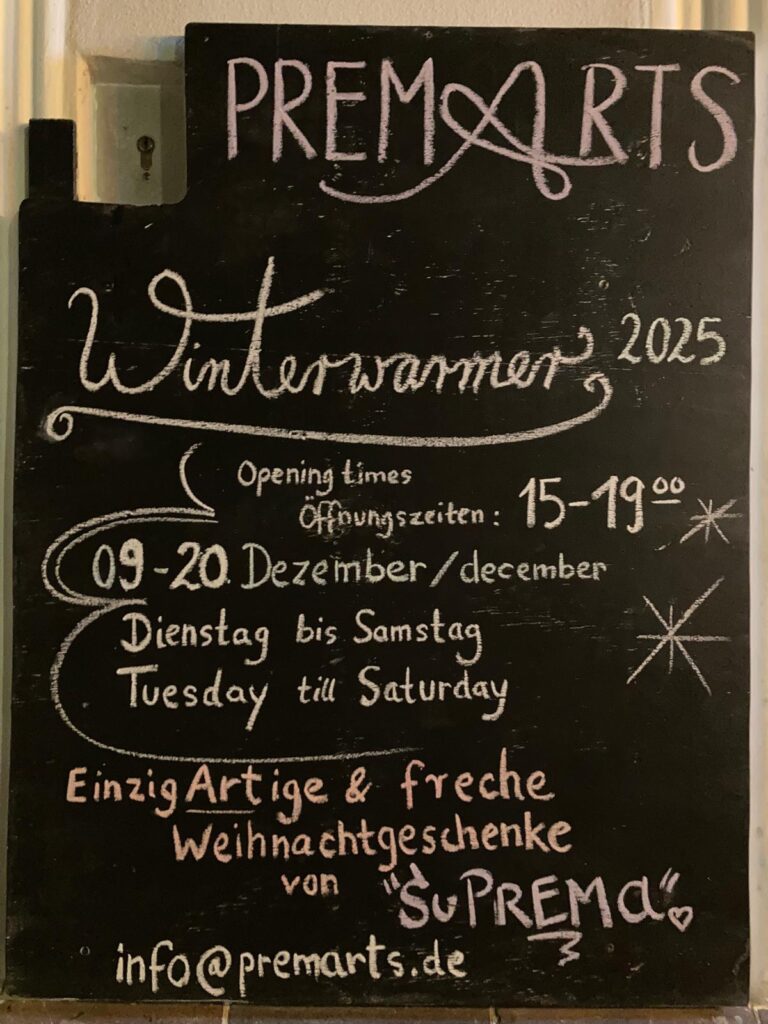 Warme freundlichewinterliche Gemütlichkeit vermischt sich in unserem Projektraum, der Ladengalerie PremArts mit erschwinglichen Kunstgeschenken. Für zwölf Tage verwandeln wir uns in eine künstlerische Winterweihnachtsverkauf.