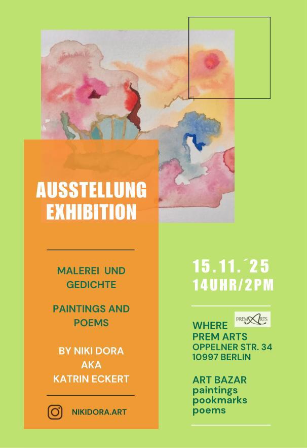- Collagen-Workshop : Mi 19. 11. ab 16h -19:30h„Die Fragmente, neu zusammengesetzt“ mit Prema Strack. Langjährige Collage-Erfahrung – eine Gelegenheit mit ihr gemeinsam eigene einzigartige visuelle Feinheiten wie intuitive Assoziationen im Heimspiel zu erkunden.